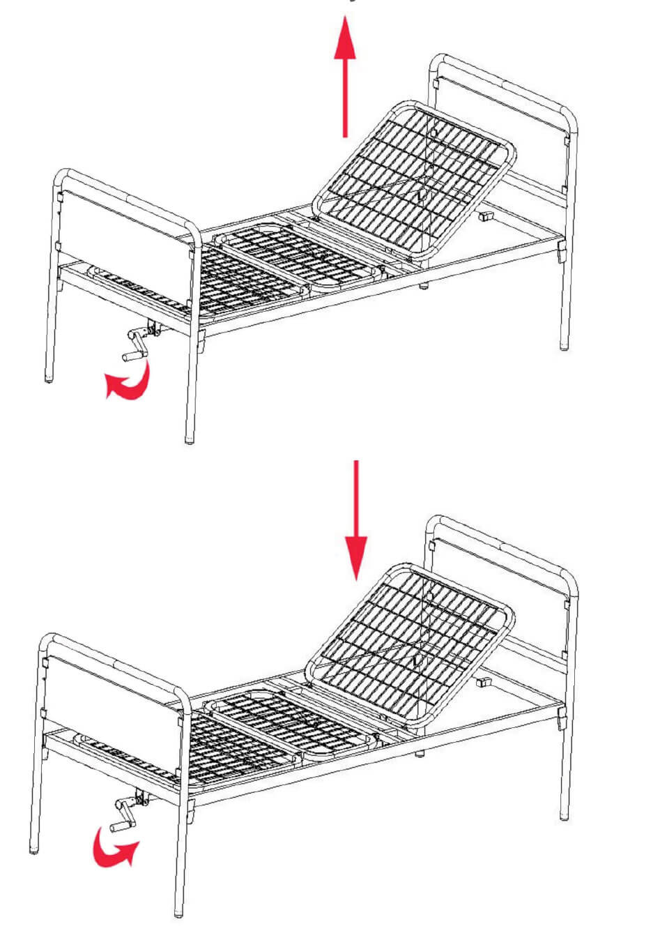 Pat de spital mecanic, cu doua sectiuni ajustabile gama IBISCO - MP091