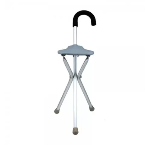 Baston cu scaun pliabil, mâner curbat - FS945L - Baston ortopedic cu 3 picioare dotat cu scaunel pliabil, realizat din oțel cromat, design anatomic cu mâner curbat, pufere din cauciuc antiderapante. Beneficii și avantaje:Baston ortopedic cu 3 picioare dotat cu scaunel pliabil, realizat din oțel crom...