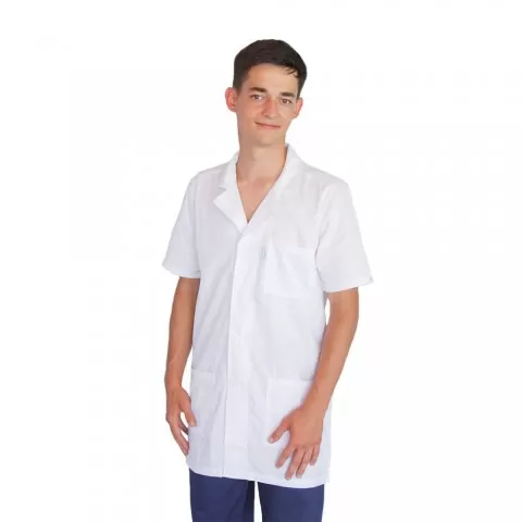 Bluza alba cu rever, pentru bărbați - D17 este o bluză medicală concepută pentru activitatea zilnică, cu accent pe confort, durabilitate și întreținere ușoară.