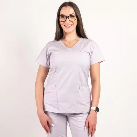 Bluza medicală Lotus Flex, stretch, mov deschis, CVC-NP4 este o bluză medicală concepută pentru activitatea zilnică, cu accent pe confort, durabilitate și întreținere ușoară.