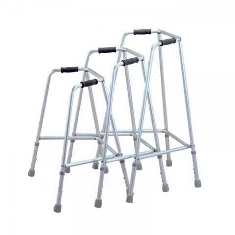 Cadru de mers fix - FS917L (M) - Cadru de mers fix realizat din tub de aluminiu anodizat diametru 22 mm, ajustabil in înălțime, mânere și pufere de cauciuc moi și sigure. Beneficii și avantaje:Cadru de mers fix realizat din tub de aluminiu anodizat diametru 22 mm, ajustabil in înălțime, mânere și pu...