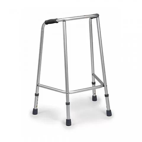 Cadru de mers fix, adulti - RP729 - Cadru de mers fix realizat din tub de aluminiu anodizat cu diametru de 22 mm, ajustabil in înălțime, mânere și pufere de cauciuc moi și sigure. Beneficii și avantaje:MĂRIMI DISPONIBILE:.Specificații tehnice și caracteristici:Mărime: S.Reglare in înălțime: de la 65...