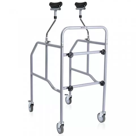 Cadru sprijin subrat detașabil, oțel cromat - RP755S - Cadru sprijin pe subrat, realizat pentru a sustine persoanele cu dificultati in miscare, cu tubulatura din oțel cromat cu 4 roți de 80 mm, cele din spate prevazute cu frana, sprijin subrat captusit, detașabil. Beneficii și avantaje:Cadru sprijin...