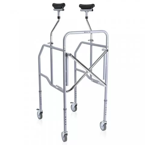 Cadru sprijin subrat pliabil cu înălțime ajustabila - RP754S - Cadru sprijin pe antebrat pliabil cu înălțime ajustabila, realizat in tubulatura din oțel cromat cu 4 roți de 80 mm, cele din spate prevazute cu frana, sprijin subrat captusit, detașabil.