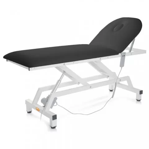 Canapea electrică de consultație realizată pe structură rectangulara din oțel vopsit în alb, reglabila pe înălțime electric și spătar ajustabil manual-mecanic cu inclinare de 60°, saltea din spuma poliuretanica cu densitatea de 25 kg/m3 și înălțime de 5 cm, husa saltea din vinil, material ignifug, ușor de curățat și spalat, pufere din cauciuc pentru a preveni alunecarea.