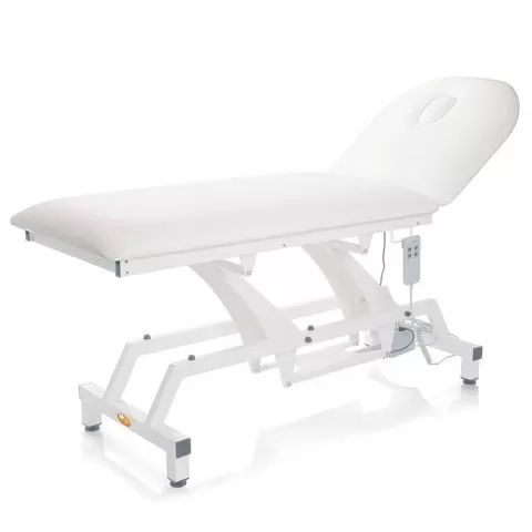 Canapea electrică de consultație realizată pe structură rectangulara din oțel vopsit în alb, reglabila pe înălțime electric și spătar ajustabil electric cu inclinare de până la 60°, saltea din spuma poliuretanica cu densitatea de 25 kg/m3 și înălțime de 8 cm, husa saltea din vinil, material ignifug,...