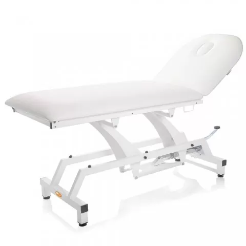 • Canapea hidraulica de consultație realizată pe structură tubulară din oțel vopsit în alb, reglabila pe înălțime hidraulic și spătar ajustabil pneumatic cu inclinare de 60°, saltea din spuma poliuretanica cu densitatea de 25 kg/m3 și înălțime de 8 cm, husa saltea din vinil, material ignifug, ușor de curățat și spalat, pufere din cauciuc pentru a preveni alunecarea.