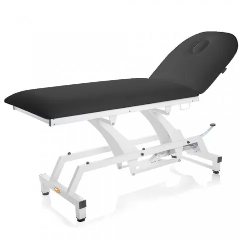 • Canapea hidraulica de consultație realizată pe structură tubulară din oțel vopsit în alb, reglabila pe înălțime hidraulic și spătar ajustabil pneumatic cu inclinare de 60°, saltea din spuma poliuretanica cu densitatea de 25 kg/m3 și înălțime de 8 cm, husa saltea din vinil, material ignifug, ușor de curățat și spalat, pufere din cauciuc pentru a preveni alunecarea.