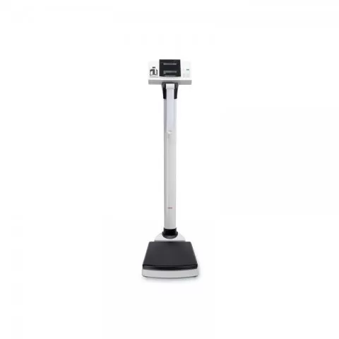 Cântar electronic cu coloana - SECA764 - cântar ce oferă opțiunea de BMI și imprimanta termică ce este activată automat în momentul în care pacientul se urca pe cântar, în momentul în care acesta coboară de pe acesta valorile înălțimii, greutății și BMI sunt automat printate.