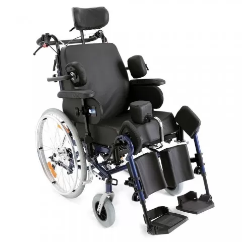 Cărucior cu roțile multipozabil, cu actionare manuala, metal vopsit - CP910 - Cărucior cu roțile multipozabil pentru transport persoane cu handicap. Beneficii și avantaje:construit pe cadru din aluminiu vopsit/întărit.cu antrenare manuala.suport pentru torace reglabil și detașabil.sprijin pentru bra...