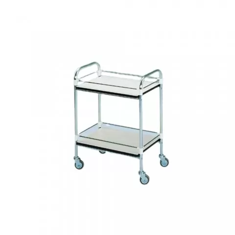 Două rafturi realizate din PAL laminat de 18 mm grosime, cu bare laterale de protecție impotriva caderii. Beneficii și avantaje: Carucior din aluminiu pentru instrumentar Carucior pe cadru din aluminiu anodizat cu tub rotund, montat pe roți de 80 mm, cu două mânere laterale Două rafturi realizate ...