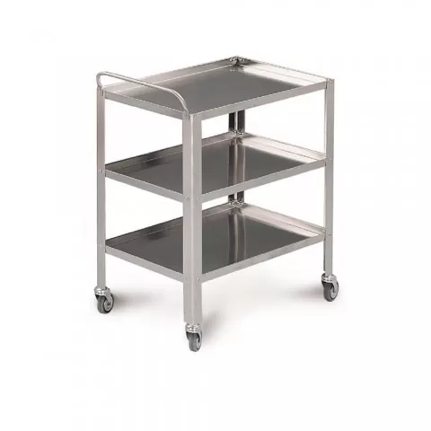 Carucior rastel din inox pentru instrumentar - MO245 este prezentat cu toate caracteristicile și specificațiile tehnice originale, într-un format clar și ușor de parcurs. Beneficii și avantaje: Carucior instrumentar cu cadru din inox cu 3 rafturi, mâner pentru manevrare ușoară și 4 roți Specific...