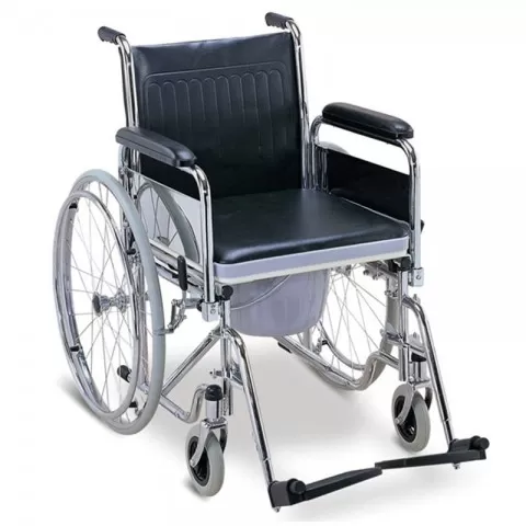 Cărucior WC pliabil cu roți, din otel cromat, cu antrenare manuala.