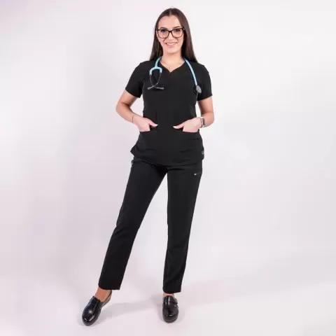 Costum medical Lotus Flex, stretch, negru, TS-NP10 TS-SP3 este un costum medical conceput pentru activitatea zilnică, cu accent pe confort, durabilitate și întreținere ușoară.