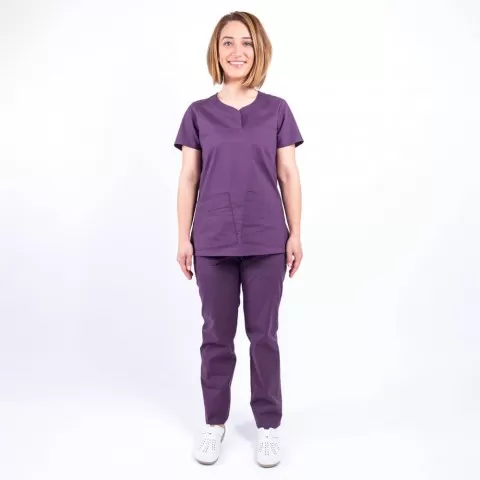 Costum medical Lotus Flex, stretch, visiniu, CVC-NP3 CVC-SP2 este un costum medical conceput pentru activitatea zilnică, cu accent pe confort, durabilitate și întreținere ușoară.