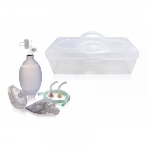 Kit de resuscitare adulti - RA141 este un produs medical, recomandat pentru utilizare profesională conform destinației sale. Include 1 balon de resuscitare din silicon, autoclavabil.
