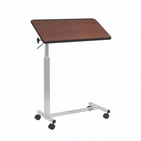 Masa de servit la pat cu roți și o placa - RS891 Masa de servit la pat cu suprafata laminata și blat cu chenar din plastic, realizata pe cadru de otel vopsit, cu o placa mare inclinabila în mai multe pozitii Baza masutei are 4 roți cu diametrul de 5 cm din care 2 cu frână și 2 roți fara frână.