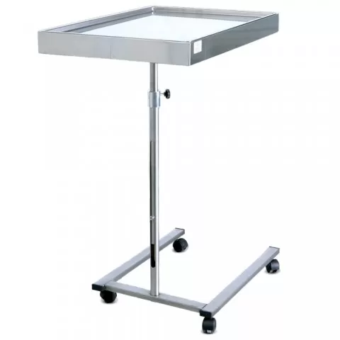 Masa Mayo construita în totalitate din inox AISI 304, destinata salilor de operații și cabinetelor medicale, pentru transportat instrumente din oțel inoxidabil.