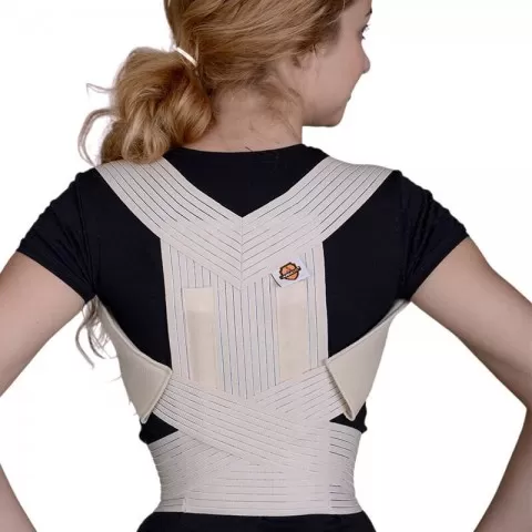 • Are 2 benzi elastice care cuprind umerii și sunt fixate pe torace, corectand prin tractiune pozitia trunchiului.