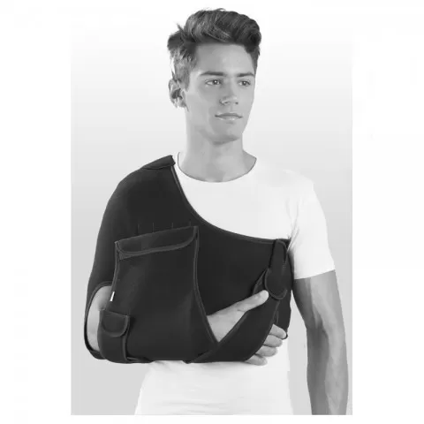 Sistem de fixare al umarului și al bratului recomandata in tratamentul leziunilor la umar și cot. Poate fi ajustata rapid și ușor pe forma corpului pacientului și se utilizeaza in conformitate cu instructiunile unui medic sau fizioterapeut. Poate fi folosita atât pe umarul drept cât și pe umarul stang. Nu trebuie utilizata in caz de rani deschise, zgarieturi ale epidermei, precum și in urma aplicarii in prealabil a unui gel de incalzire sau unguent. Se recomanda a fi spalata in apa calda (la temperaturi de pana la 40°C) cu un detergent slab.