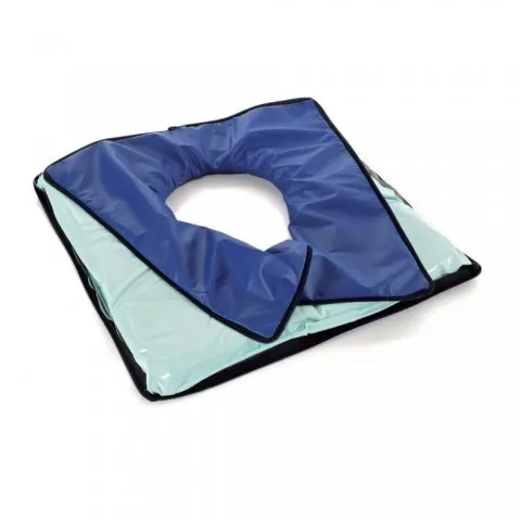 Perna din gel cu gaura - ST713 Este acoperită cu o husa pentru partea superioara de tip Easytex, o tesatura respirabila rezistență la apa și ignifuga, iar pe partea inferioara o tesatura antialunecare tip Viniflex Dimensiune perna: 42 x 42 x 4 cm.
