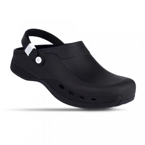 Saboți antistatici, cu sistem unic de absorbție a șocurilor, care asigură siguranța și confortul utilizatorului. Datorită designului inteligent, nu există riscul de infiltrare a lichidelor în interior, iar orificiile de aerisire de pe lateralele saboților permit circularea aerului, reglând astfel temperatura și umiditatea picioarelor.