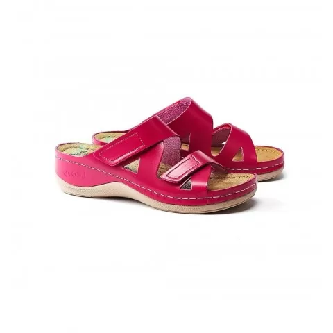 Saboți damă, de vară, din piele, inchidere cu scai, Leon 906, ciclam - saboții de damă Leon sunt potriviți în garderoba feminină. Saboții de vară Leon sunt confecționați din piele naturală 100% atât la interior, cât și la exterior, oferind confort ridicat și menținând picioarele uscate în zilele călduroase. Talpa interioară are gel cu memorie și menține confortul chiar și atunci când petreci multe ore în picioare sau mergi distanțe mari pe jos.