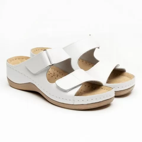 Saboți damă, de vară, din piele, Leon 905, alb - saboții de damă Leon sunt potriviți în garderoba feminină. Saboții de vară Leon sunt confecționați din piele naturală 100% atât la interior, cât și la exterior, oferind confort ridicat și menținând picioarele uscate în zilele călduroase. Talpa interioară are gel cu memorie și menține confortul chiar și atunci când petreci multe ore în picioare sau mergi distanțe mari pe jos.