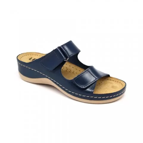 Saboți damă, de vară, din piele, Leon 905, bleumarin - saboții de damă Leon sunt potriviți în garderoba feminină. Saboții de vară Leon sunt confecționați din piele naturală 100% atât la interior, cât și la exterior, oferind confort ridicat și menținând picioarele uscate în zilele călduroase. Talpa interioară are gel cu memorie și menține confortul chiar și atunci când petreci multe ore în picioare sau mergi distanțe mari pe jos.