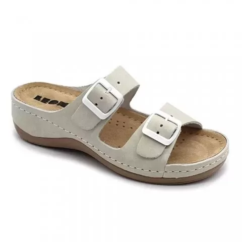 Saboți damă, de vară, din piele, Leon 908, gri deschis - saboții de damă Leon sunt potriviți în garderoba feminină. Saboții de vară Leon sunt confecționați din piele naturală 100% atât la interior, cât și la exterior, oferind confort ridicat și menținând picioarele uscate în zilele călduroase. Talpa interioară are gel cu memorie și menține confortul chiar și atunci când petreci multe ore în picioare sau mergi distanțe mari pe jos.
