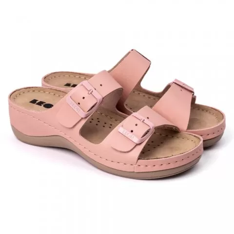 Saboți damă, de vară, din piele, Leon 908, roz - saboții de damă Leon sunt potriviți în garderoba feminină. Saboții de vară Leon sunt confecționați din piele naturală 100% atât la interior, cât și la exterior, oferind confort ridicat și menținând picioarele uscate în zilele călduroase. Talpa interioară are gel cu memorie și menține confortul chiar și atunci când petreci multe ore în picioare sau mergi distanțe mari pe jos.