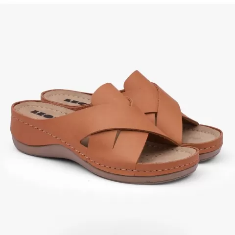Saboți damă, de vară, din piele, Leon 932, maro - saboții de damă Leon sunt potriviți în garderoba feminină. Saboții Leon sunt confecționați din piele naturală 100% atât la interior, cât și la exterior, oferind confort ridicat și menținând picioarele uscate pe tot parcursul zilei. Talpa interioară are gel cu memorie și menține confortul chiar și atunci când petreci multe ore în picioare sau mergi distanțe mari pe jos.