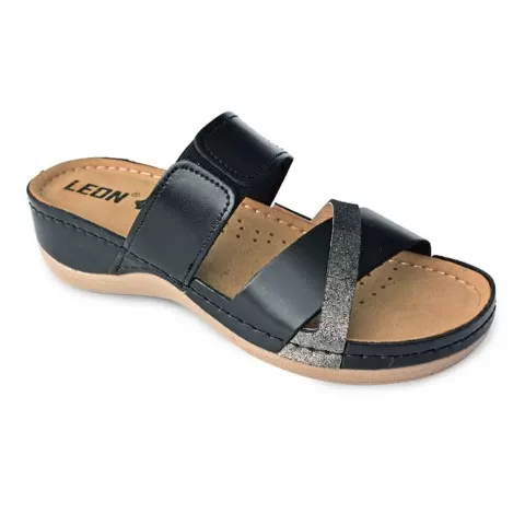 Saboți damă, din piele, de vară, Leon 909, negru - saboții de damă Leon sunt potriviți în garderoba feminină. Saboții de vară Leon sunt confecționați din piele naturală 100% atât la interior, cât și la exterior, oferind confort ridicat și menținând picioarele uscate în zilele călduroase. Talpa interioară are gel cu memorie și menține confortul chiar și atunci când petreci multe ore în picioare sau mergi distanțe mari pe jos.