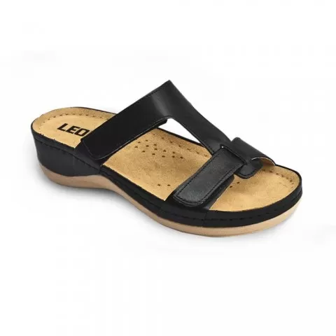 Saboți damă, din piele, de vară, Leon 914, negru - saboții de damă Leon sunt potriviți în garderoba feminină. Saboții Leon sunt confecționați din piele naturală 100% atât la interior, cât și la exterior, oferind confort ridicat și menținând picioarele uscate pe tot parcursul zilei. Talpa interioară are gel cu memorie și menține confortul chiar și atunci când petreci multe ore în picioare sau mergi distanțe mari pe jos.