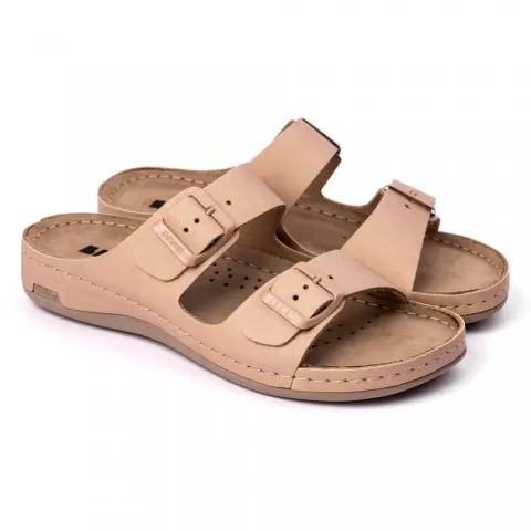Saboti dama Leon 955, de vara, din piele, bej