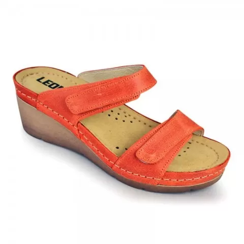 Saboți Leon 1040, de vară, din piele, portocaliu - saboții de damă Leon sunt potriviți în garderoba feminină. Saboții de vară Leon sunt confecționați din piele naturală 100% atât la interior, cât și la exterior, oferind confort ridicat și menținând picioarele uscate în zilele călduroase. Talpa interioară are gel cu memorie și menține confortul chiar și atunci când petreci multe ore în picioare sau mergi distanțe mari pe jos.
