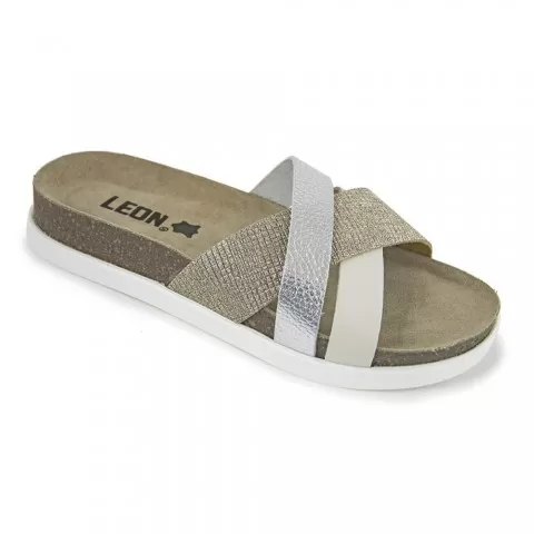 Saboți Leon 1201, de vară, din piele, argintiu - saboții de damă Leon sunt potriviți în garderoba feminină. Saboții de vară Leon sunt confecționați din piele naturală 100% atât la interior, cât și la exterior, oferind confort ridicat și menținând picioarele uscate în zilele călduroase. Talpa interioară are gel cu memorie și menține confortul chiar și atunci când petreci multe ore în picioare sau mergi distanțe mari pe jos.