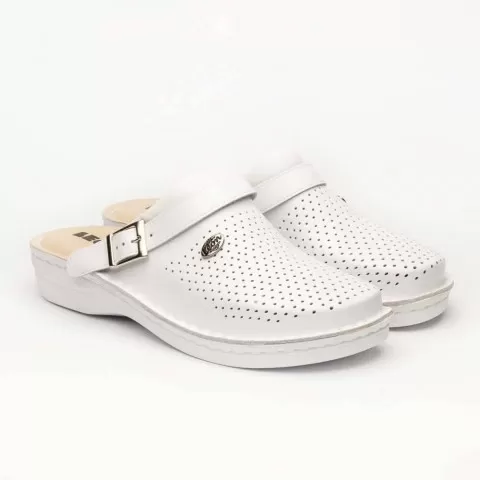 Saboți medicali, de bărbați, din piele, cu baretă, Leon V202M, alb - saboții Leon sunt recomandați pentru activități profesionale desfășurate în clinici private, spitale, centre de îngrijire medicală sau saloane de coafură și centre estetice, în industria farmaceutică, industria alimentară, horeca, servicii de curățenie, grădinițe și nu numai, respectând standarde ridicate de calitate.