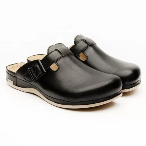Saboți medicali, de bărbați, din piele, negru, Leon 707M - saboții Leon sunt recomandați pentru activități profesionale desfășurate în clinici private, spitale, centre de îngrijire medicală sau saloane de coafură și centre estetice, în industria farmaceutică, industria alimentară, horeca, servicii de curățenie, grădinițe și nu numai, respectând standarde ridicate de calitate.