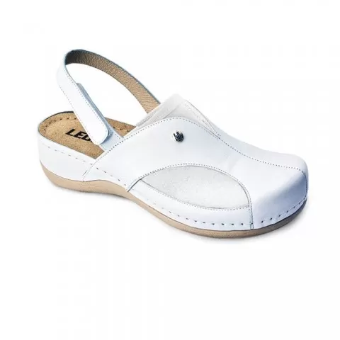 Saboți medicali, de damă, din piele, alb, Leon 913 - saboții Leon sunt recomandați pentru activități profesionale desfășurate în clinici private, spitale, centre de îngrijire medicală sau saloane de coafură și centre estetice, în industria farmaceutică, industria alimentară, horeca, servicii de curățenie, grădinițe și nu numai, respectând standarde ridicate de calitate.