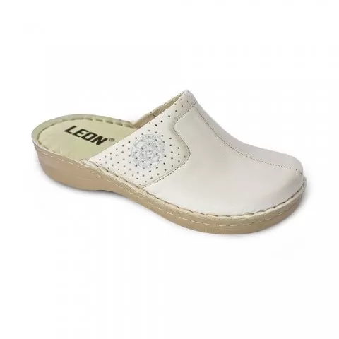 Saboți medicali, de damă, din piele, bej, Leon 360 - saboții Leon sunt recomandați pentru activități profesionale desfășurate în clinici private, spitale, centre de îngrijire medicală sau saloane de coafură și centre estetice, în industria farmaceutică, industria alimentară, horeca, servicii de curățenie, grădinițe și nu numai, respectând standarde ridicate de calitate.