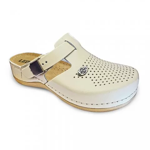 Saboți medicali, de damă, din piele, bej, Leon 900 - saboții Leon sunt recomandați pentru activități profesionale desfășurate în clinici private, spitale, centre de îngrijire medicală sau saloane de coafură și centre estetice, în industria farmaceutică, industria alimentară, horeca, servicii de curățenie, grădinițe și nu numai, respectând standarde ridicate de calitate.