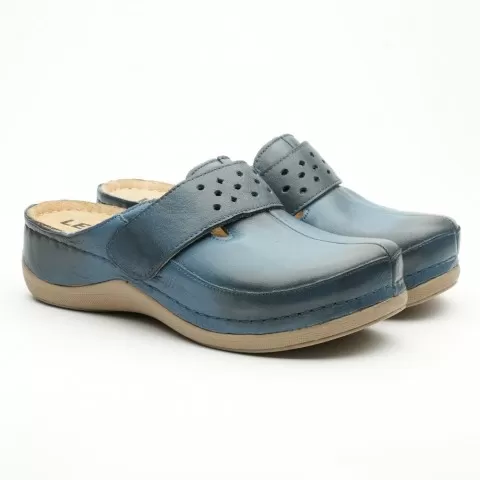 Saboți medicali, de damă, din piele, bleumarin, Leon 902 - saboții Leon sunt recomandați pentru activități profesionale desfășurate în clinici private, spitale, centre de îngrijire medicală sau saloane de coafură și centre estetice, în industria farmaceutică, industria alimentară, horeca, servicii d...
