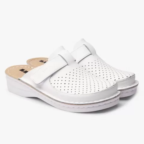 Saboti medicali, de dama, din piele, Leon 263 Bakkar, alb mat