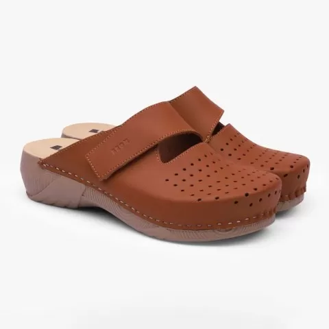 Saboti medicali, de dama, din piele, Leon 3500 Bakkar, maro mat