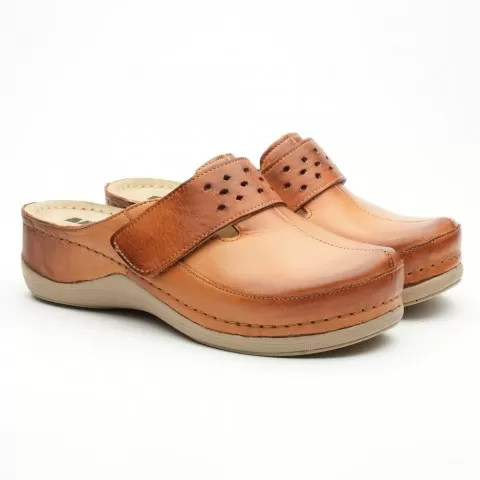 Saboți medicali, de damă, din piele, maro, Leon 902 - saboții Leon sunt recomandați pentru activități profesionale desfășurate în clinici private, spitale, centre de îngrijire medicală sau saloane de coafură și centre estetice, în industria farmaceutică, industria alimentară, horeca, servicii de cur...