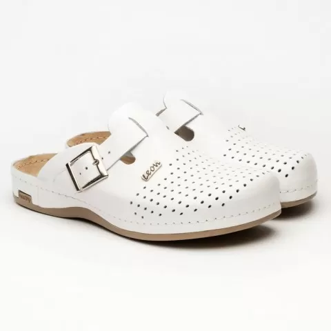Saboți medicali, din piele, pentru bărbați, Leon 700M, alb - saboții Leon sunt recomandați pentru activități profesionale desfășurate în clinici private, spitale, centre de îngrijire medicală sau saloane de coafură și centre estetice, în industria farmaceutică, industria alimentară, horeca, servicii de curățenie, grădinițe și nu numai, respectând standarde ridicate de calitate.