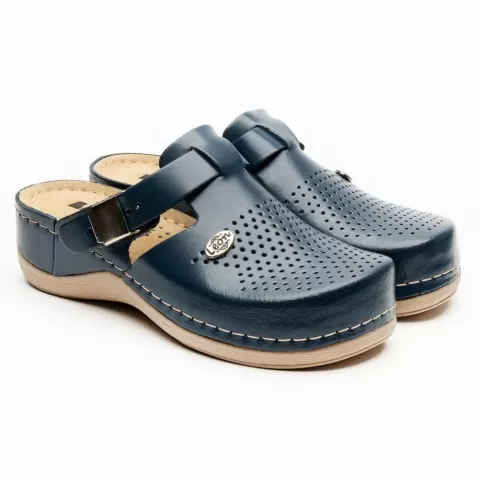 Saboți medicali de damă, din piele, bleumarin, Leon 900 - saboții Leon sunt recomandați pentru activități profesionale desfășurate în clinici private, spitale, centre de îngrijire medicală sau saloane de coafură și centre estetice, în industria farmaceutică, industria alimentară, horeca, servicii de curățenie, grădinițe și nu numai, respectând standarde ridicate de calitate.