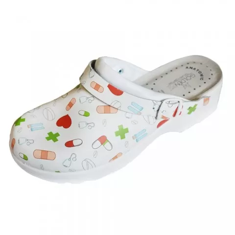 Saboți medicali din piele, cu imprimeu Fantasia 24 - Goldenfit New - linia de saboți din gama GOLDENFIT este concepută pentru toate mediile profesionale, de la clinici private, spitale și centre de îngrijire medicală până la saloane de coafură și centre estetice.