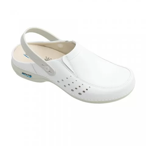 Saboti medicali din piele naturala, lavabili, cu bareta Nursingcare Wash'Go Berlin, alb